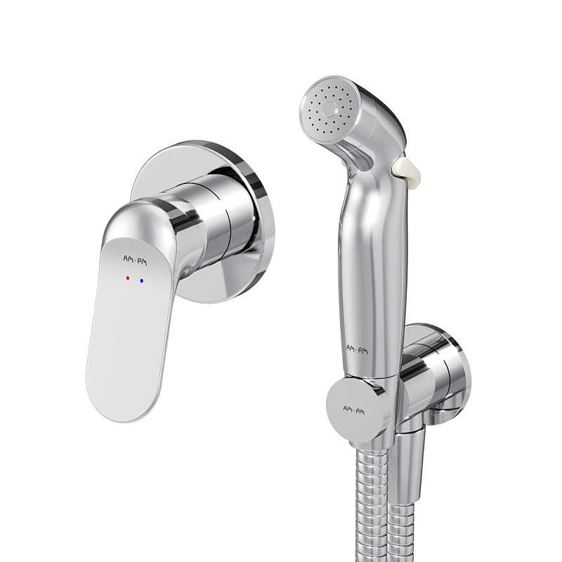 Встраиваемый гигиенический душ со смесителем AM.PM Sunny и шлангом 1200 мм. Материал - латунь. Цвет - хром. 1 режим гигиенического душа - Spray.