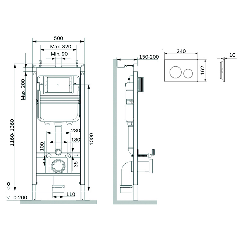 Инсталляция для подвесного унитаза AM.PM MasterFit II012713.0238 с механ. клавишей S, черная