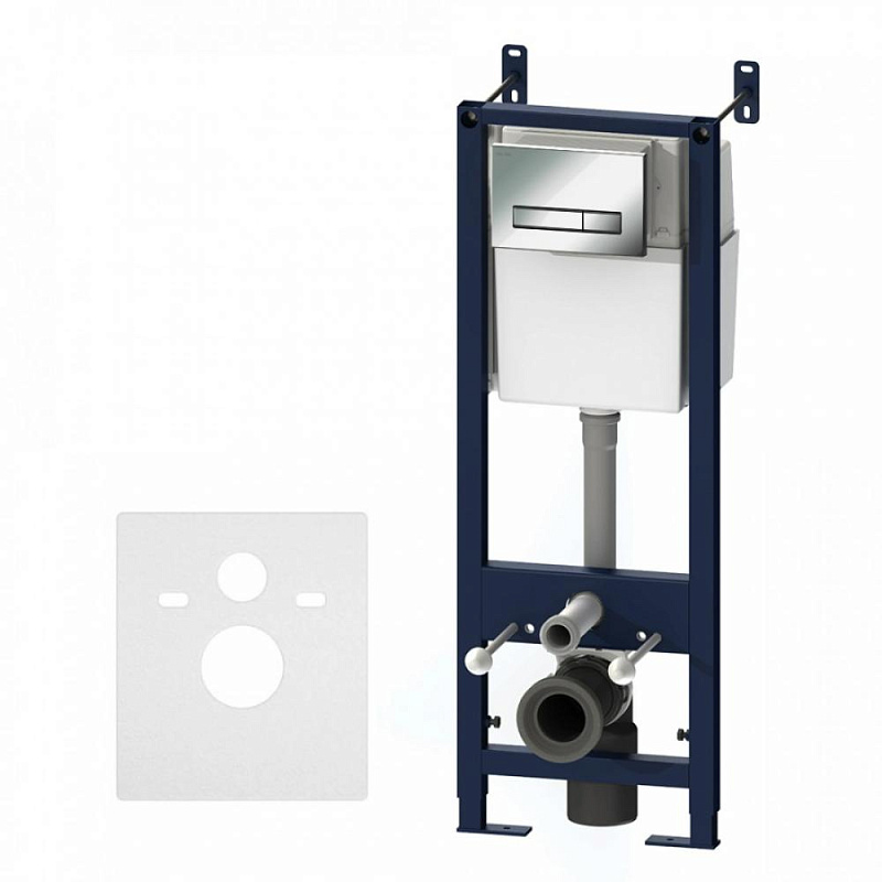 Инсталляция для подвесного унитаза бренда AM.PM коллекции Start с механическим управлением смыва включает в себя максимально полный комплект поставки: крепления, патрубки, звукоизолирующую прокладку, механическую двухрежимную клавишу смыва. Размер инсталляции (Ш/Г/В): 410х160-275х1115-1385 мм. Размер клавиши (Ш/Г/В): 230х16х145 мм. Цвет и материал: синий каркас из нержавеющей стали, белый бачок из ABS-пластика, механическая клавиша хром. Форма кнопок: прямоугольные.