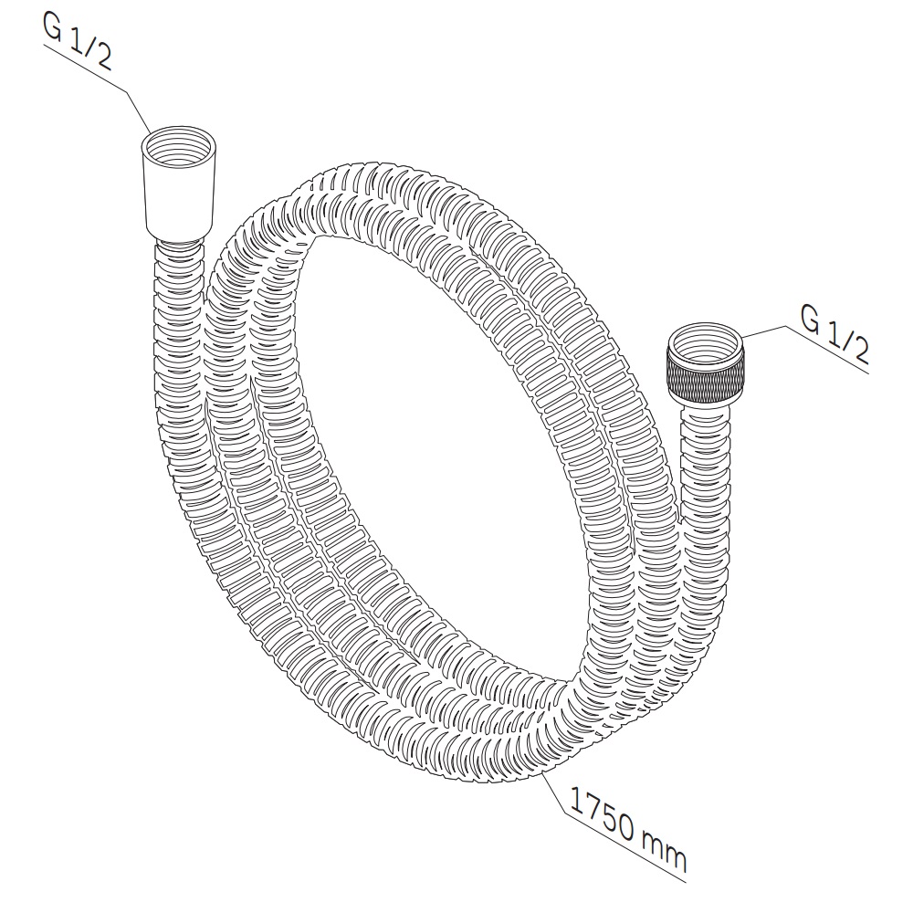Душевой шланг от бренда АM.PM. Длина душевого шланга - 1750 мм. Материал изделия - нержавеющая сталь. Резьбовое соединение - G1/2.