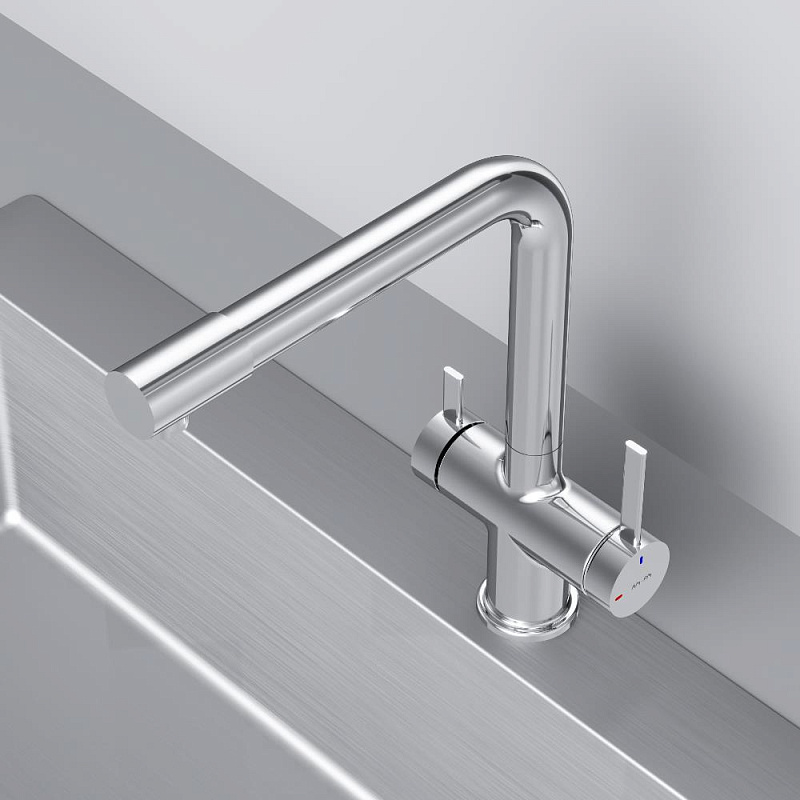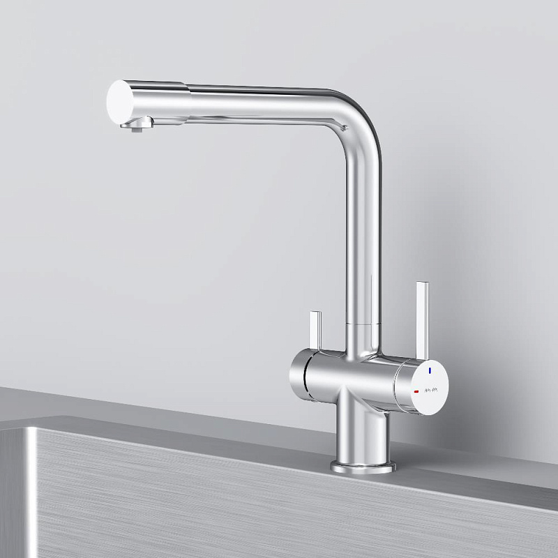 Смеситель для кухни AM.PM Func F8F05700 высокий с L-изливом с каналом для питьевой воды, хром