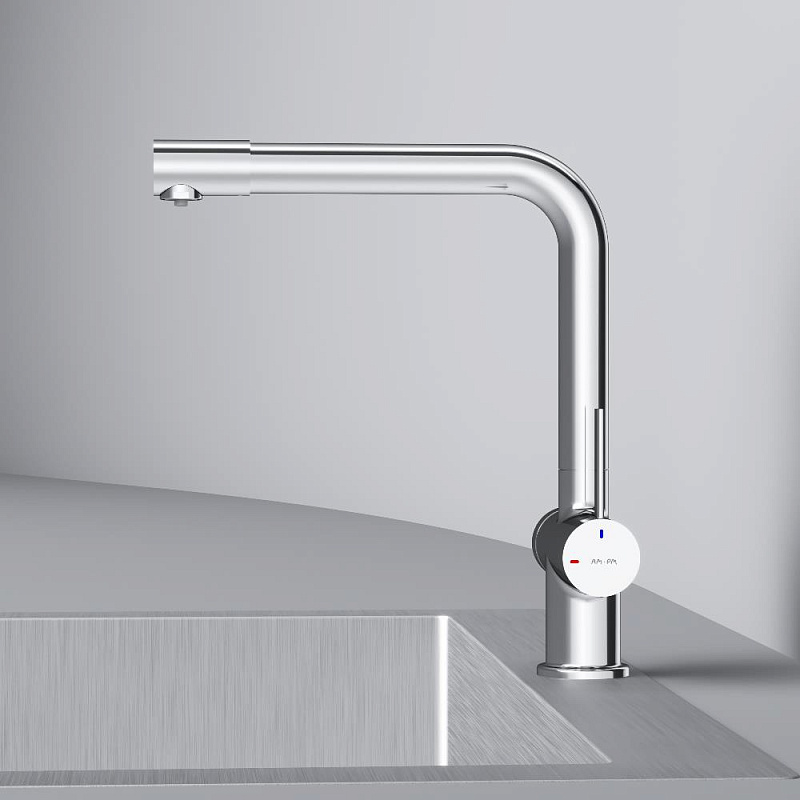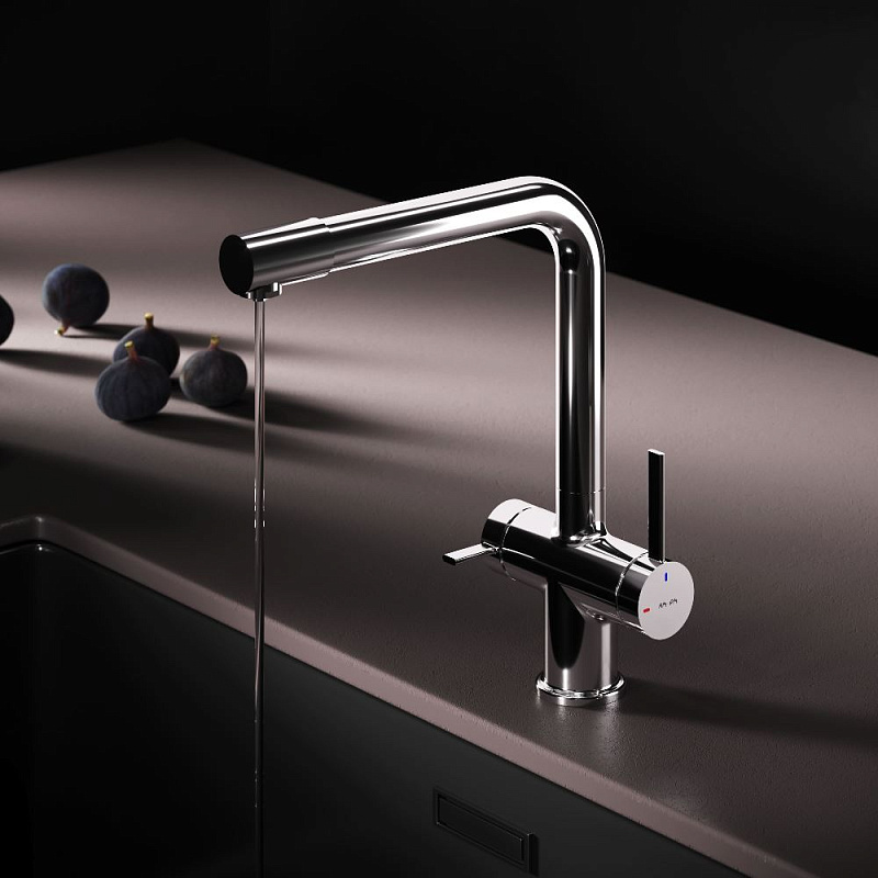 Встречайте долгожданное пополнение нашумевшей коллекции Func — кухонные смесители с оригинальными «фишками», характерными для всей коллекции. Дизайн, характерный только для премиум-сегмента, благодаря собственным дизайнерам бренда теперь представлен и в более доступной ценовой категории. Смеситель оснащён встроенным каналом для подачи питьевой воды. Чтобы получить питьевую воду, воспользуйтесь ручкой, расположенной с левой стороны корпуса; для обычной воды управляйте смесителем привычным образом. Размер (Ш/Г/В): 135x265x298 мм. Материал - нержавеющая сталь, цинк, латунь. Цвет - хром. Тип управления - однозахватный. Излив - поворотный.
