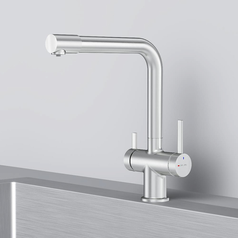 Смеситель для кухни AM.PM Func F8F05711 высокий с L-изливом с каналом для питьевой воды, сатин
