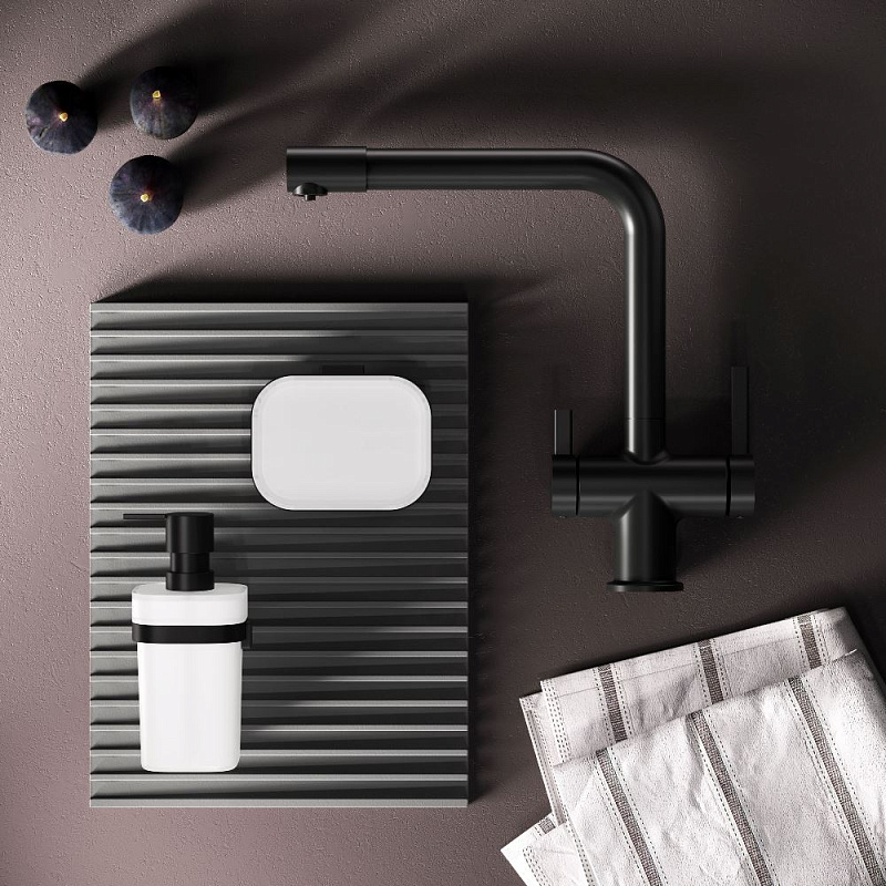 Встречайте долгожданное пополнение нашумевшей коллекции Func — кухонные смесители с оригинальными «фишками», характерными для всей коллекции. Дизайн, характерный только для премиум-сегмента, благодаря собственным дизайнерам бренда теперь представлен и в более доступной ценовой категории. Смеситель оснащён встроенным каналом для подачи питьевой воды. Чтобы получить питьевую воду, воспользуйтесь ручкой, расположенной с левой стороны корпуса; для обычной воды управляйте смесителем привычным образом. Размер (Ш/Г/В): 135x265x298 мм. Материал - нержавеющая сталь, цинк, латунь. Цвет - черный. Тип управления - однозахватный. Излив - поворотный.