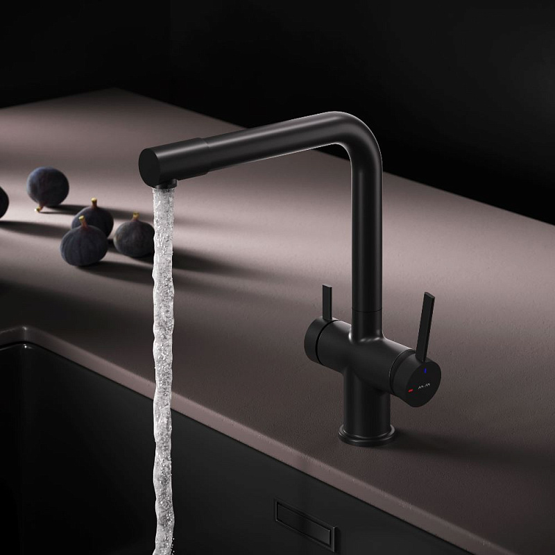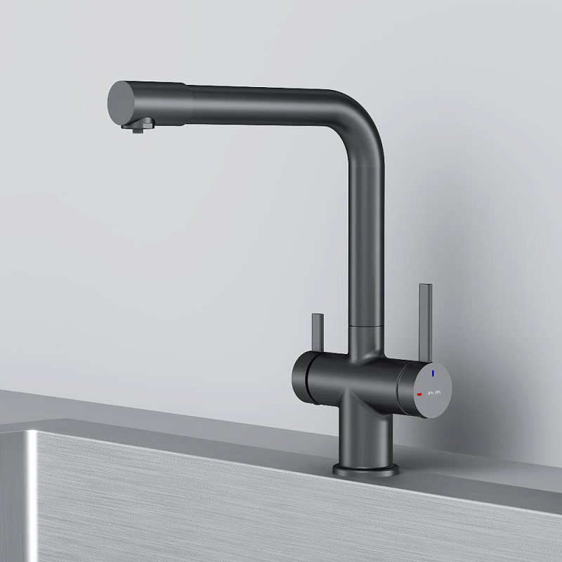 Смеситель для кухни AM.PM Func F8F05722 высокий с L-изливом с каналом для питьевой воды, черный