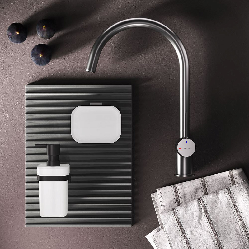 Смеситель для кухни AM.PM Func F8F07812 высокий, сатин с каналом для питьевой воды и гибким черным изливом