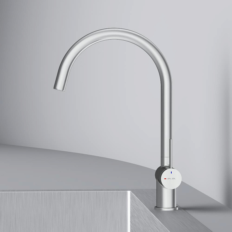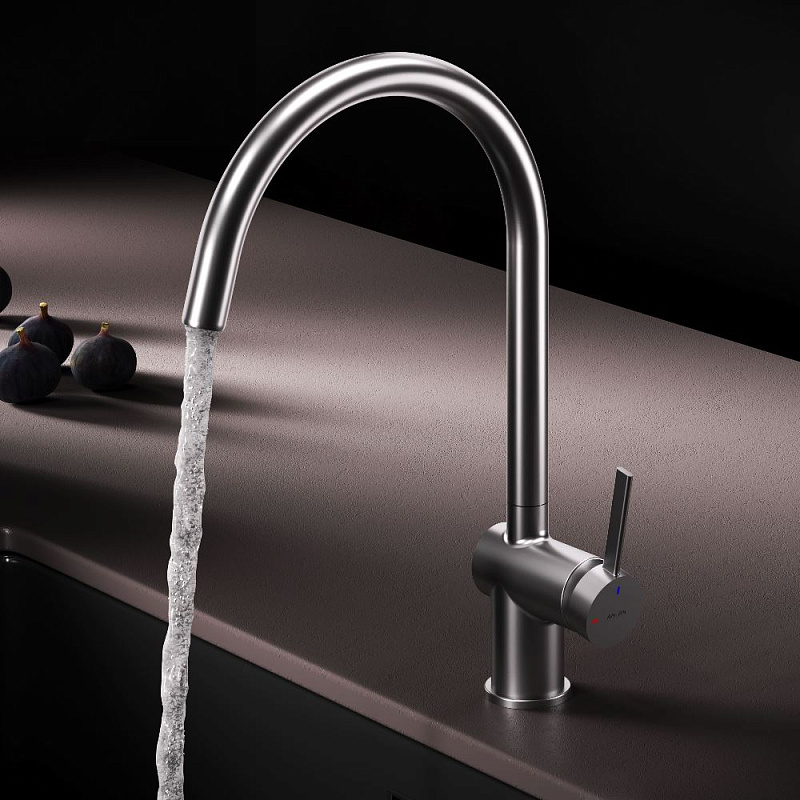 Встречайте долгожданное пополнение нашумевшей коллекции Func — кухонные смесители с оригинальными «фишками», характерными для всей коллекции. Дизайн, характерный только для премиум-сегмента, благодаря собственным дизайнерам бренда теперь представлен и в более доступной ценовой категории. Размер (Ш/Г/В): 105x262x380 мм. Материал - нержавеющая сталь, цинк, латунь. Цвет - сатин. Тип управления - однозахватный. Излив - поворотный.