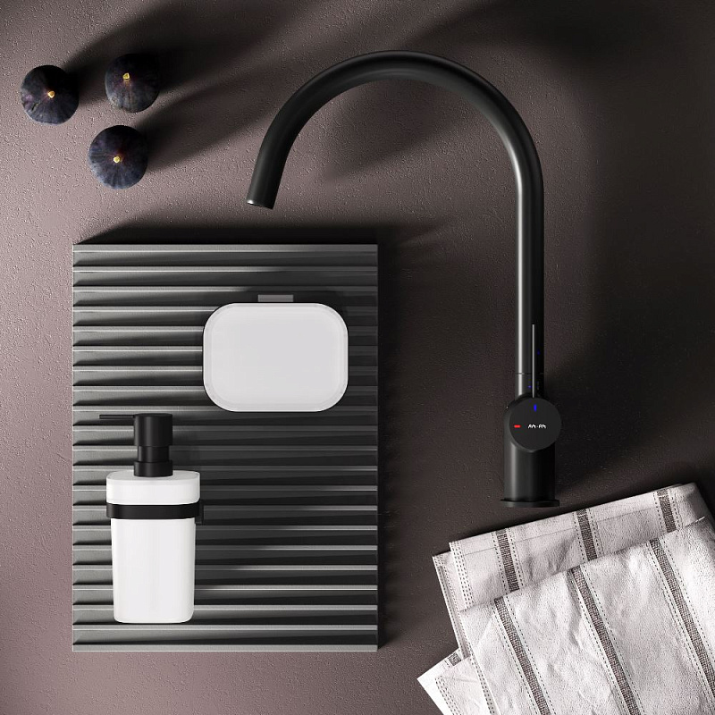 Встречайте долгожданное пополнение нашумевшей коллекции Func — кухонные смесители с оригинальными «фишками», характерными для всей коллекции. Дизайн, характерный только для премиум-сегмента, благодаря собственным дизайнерам бренда теперь представлен и в более доступной ценовой категории. Размер (Ш/Г/В): 105x262x380 мм. Материал - нержавеющая сталь, цинк, латунь. Цвет - черный. Тип управления - однозахватный. Излив - поворотный.