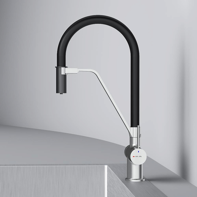 • уникальная ручка в форме тонкого стика позволяет с легкостью управлять смесителем, превращая повседневные задачи в настоящее удовольствие.