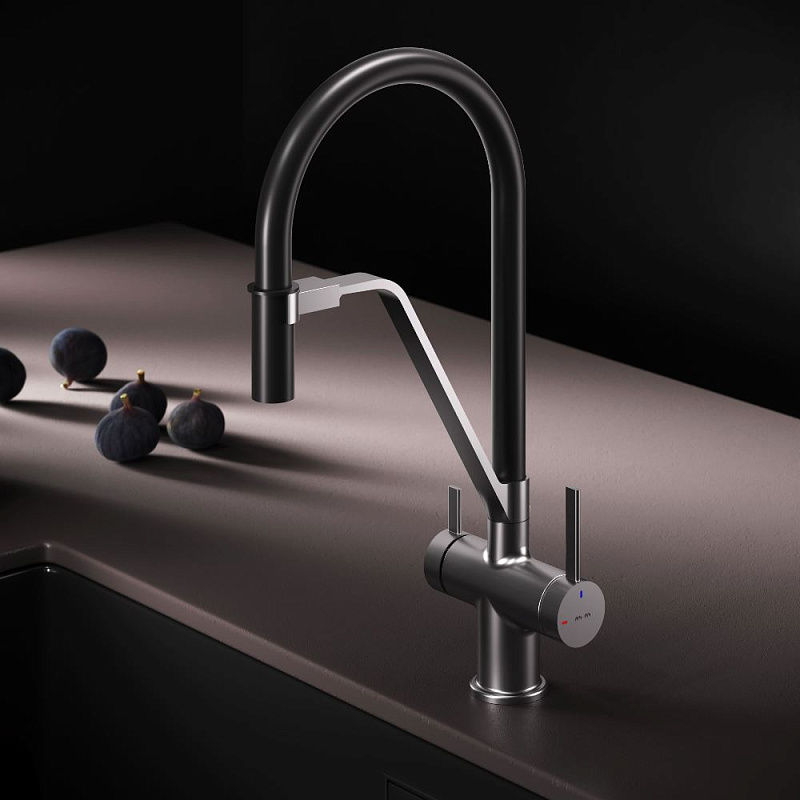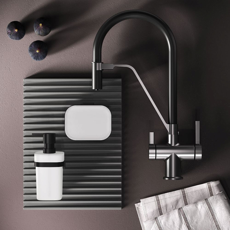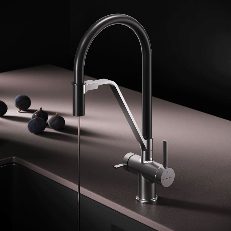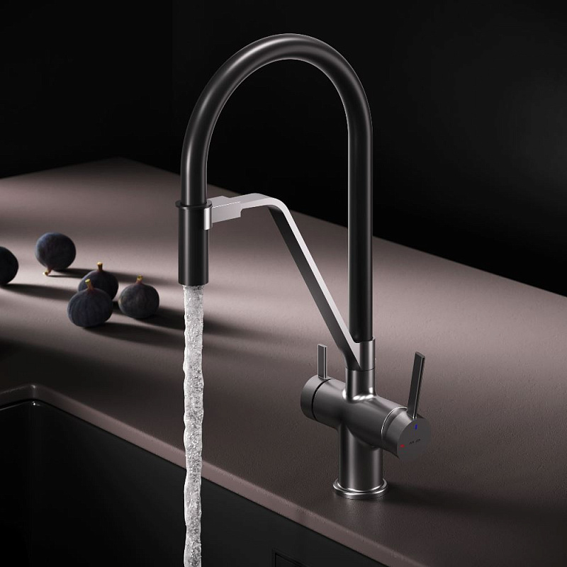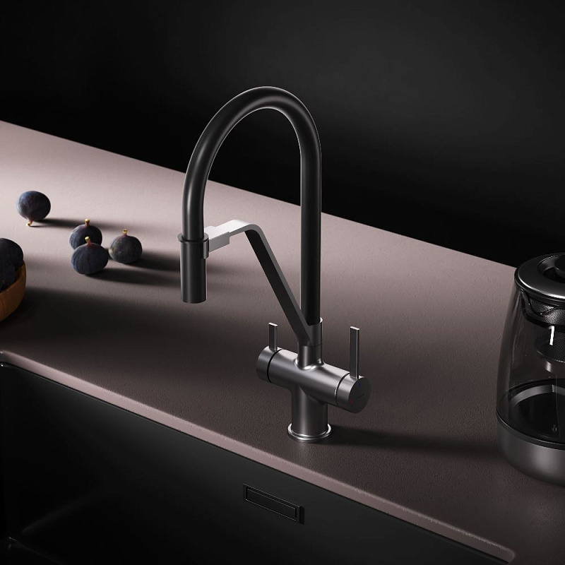 Смеситель для кухни AM.PM Func F8F07802 высокий с каналом для питьевой воды и гибким черным изливом
