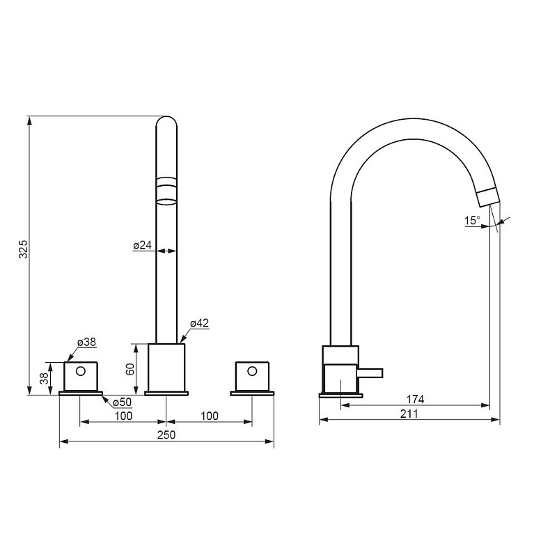 Смеситель для раковины (умывальника) Damixa Scandinavian Pure 360200300 трехсекционный, черный