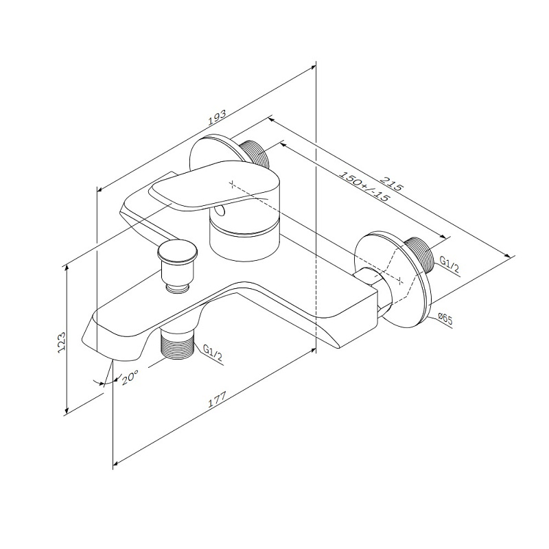 Смеситель для ванны и душа AM.PM Func - экстраординарное пополнение самой функциональной коллекции в линейке AM.PM. Премиальный дизайн смесителя разработан культовым немецким агентством Brandis. Точная инженерия для вашего комфорта: благодаря увеличенному диапазону хода ручки управление температурой воды стало ещё удобнее и плавнее. Размер (Ш/Г/В): 215x193x123 мм. Материал - латунь. Цвет - хром. Излив - статичный. Тип управления - однозахватный.