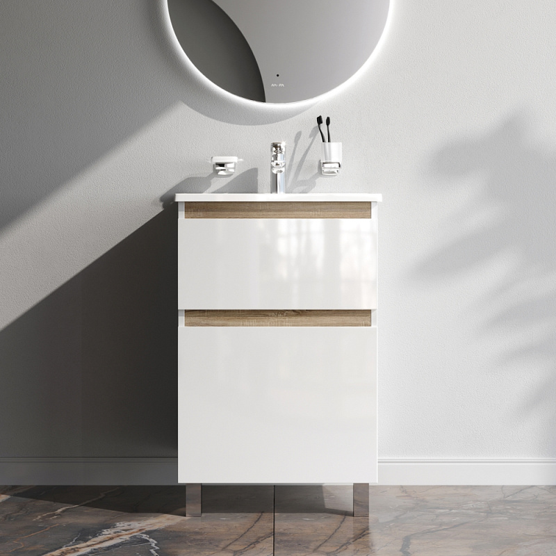 Тумба с раковиной 55 AM.PM X-Joy M85AFSX0552WG напольная на ножках белый глянец