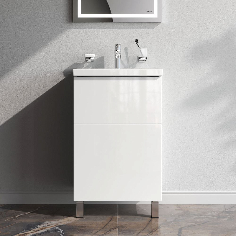 Тумба с раковиной 50 AM.PM Gem M90-FSX0502WG-WCC0502WG напольная на ножках, белый глянец