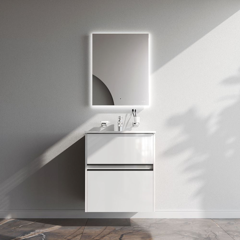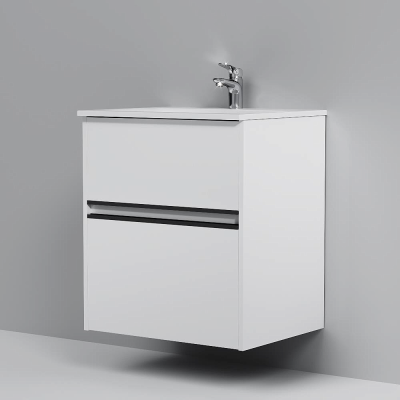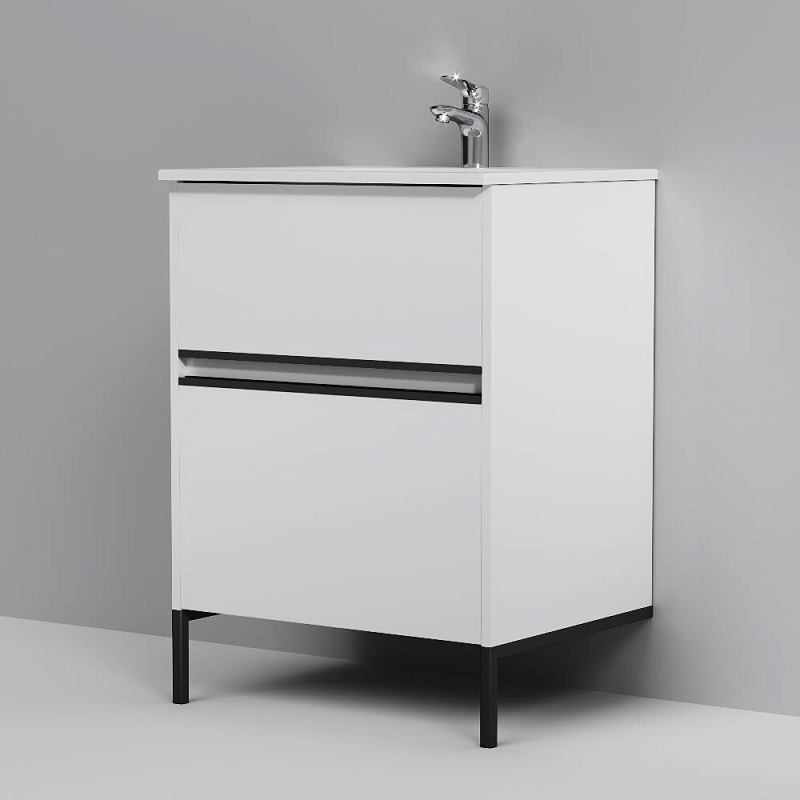 Тумба с раковиной 60 AM.PM Sense M7B-FUX0602WG-WCC0602WG подвесная/напольная на ножках, белый глянец купить в Москве.