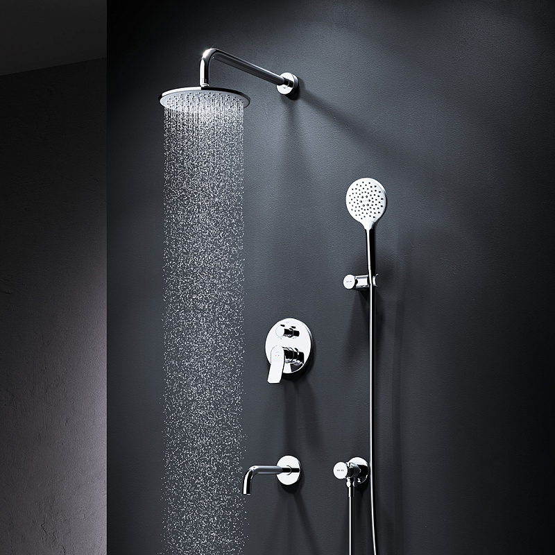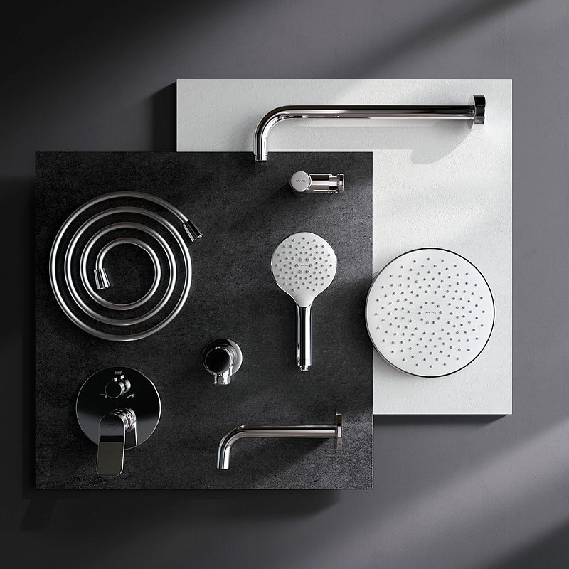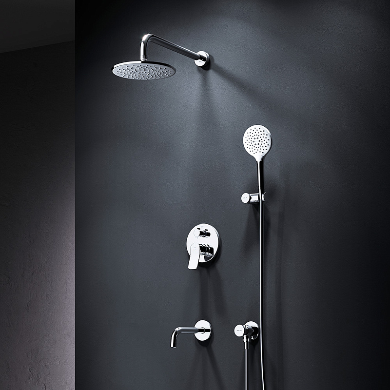 Встраиваемая душевая система от бренда AM.PM коллекции X-Joy включает в себя по-настоящему дизайнерские продукты в своем ценовом сегменте: лейку тропического душа с держателем, смеситель для ванны и душа, душевую лейку с держателем, шланг для душа, излив на ванну. Разработанные дизайн-агентством GP designpartners из Австрии, они завоевали любовь многих покупателей.